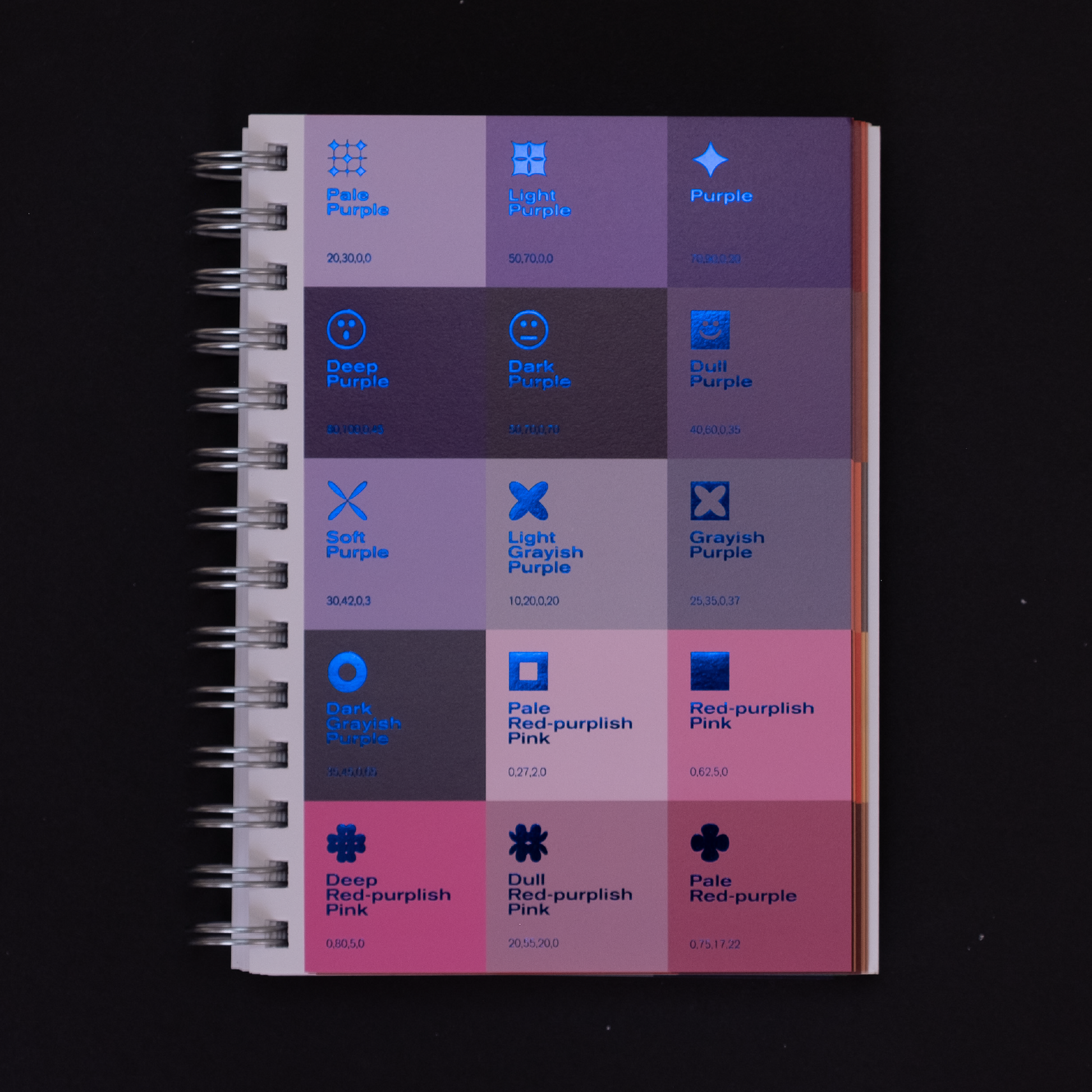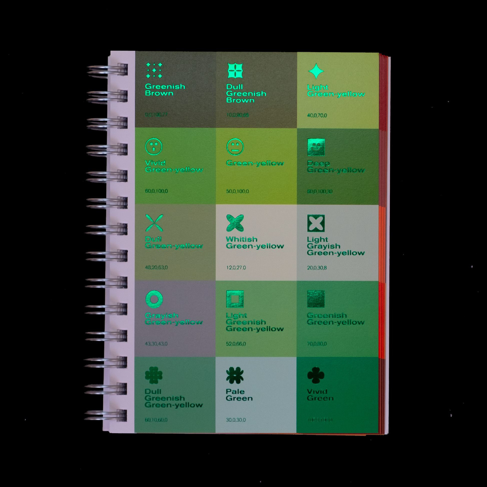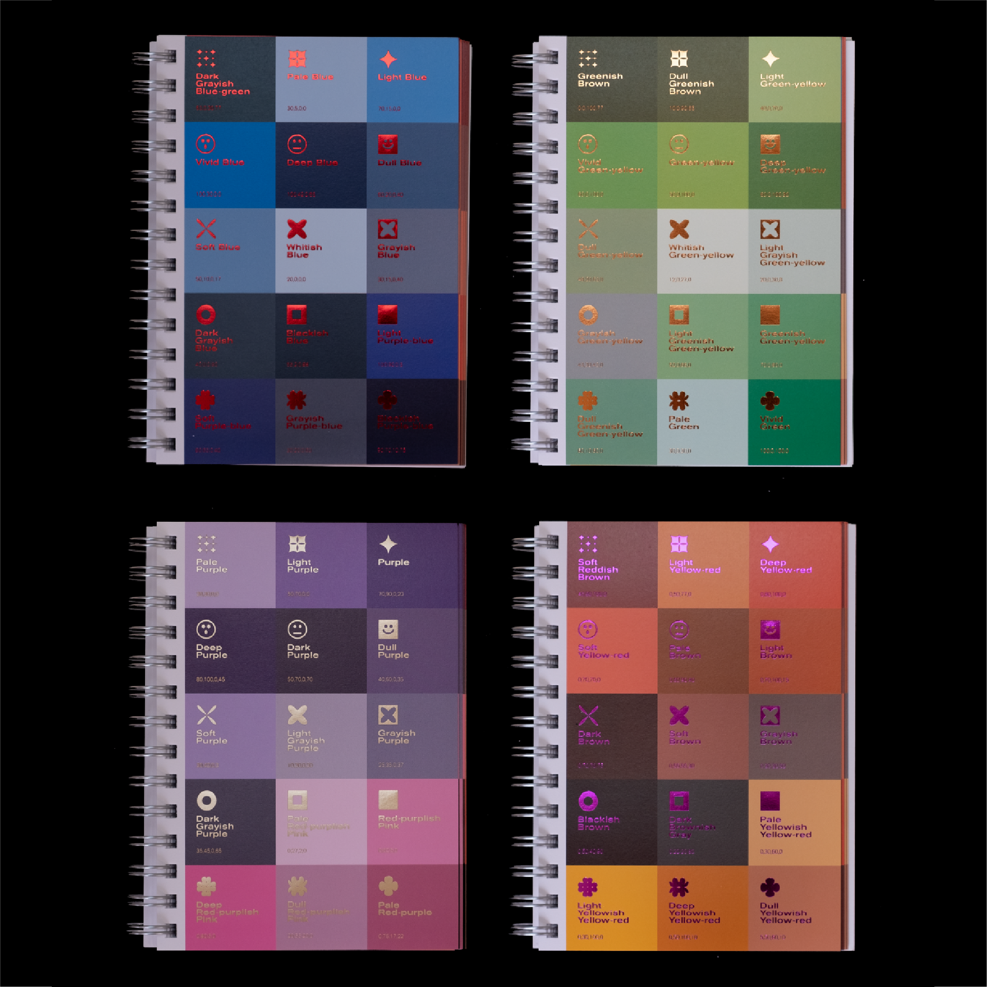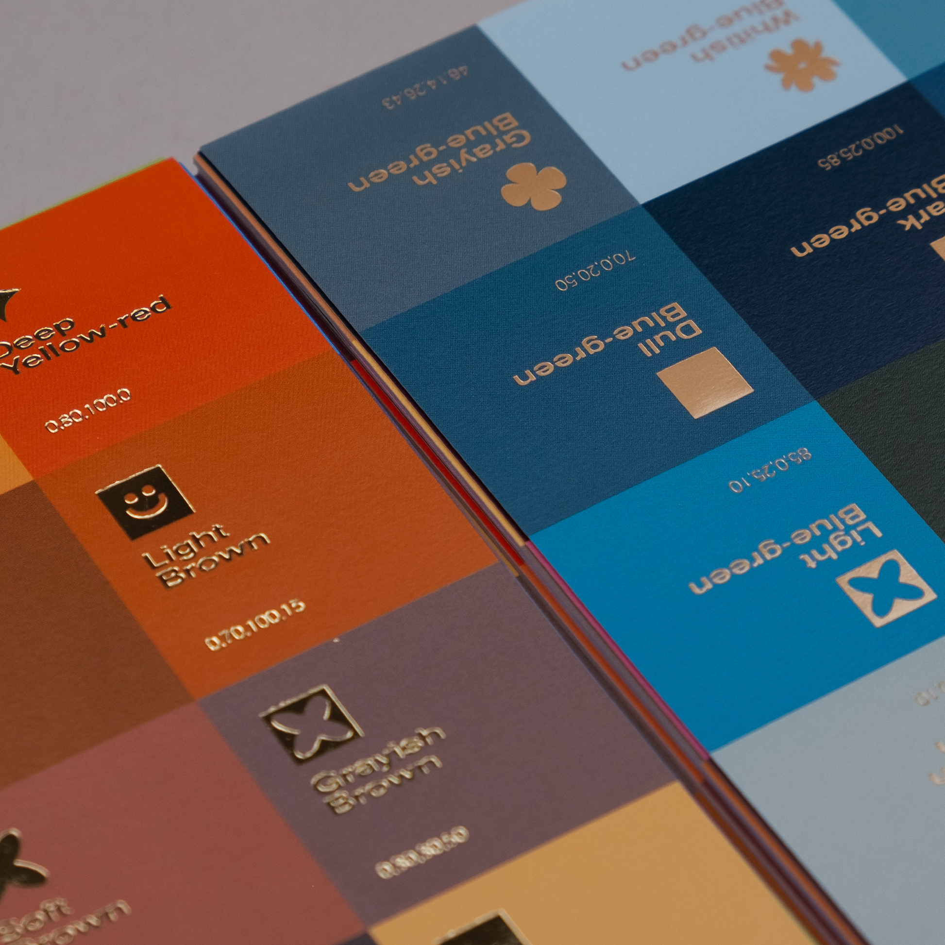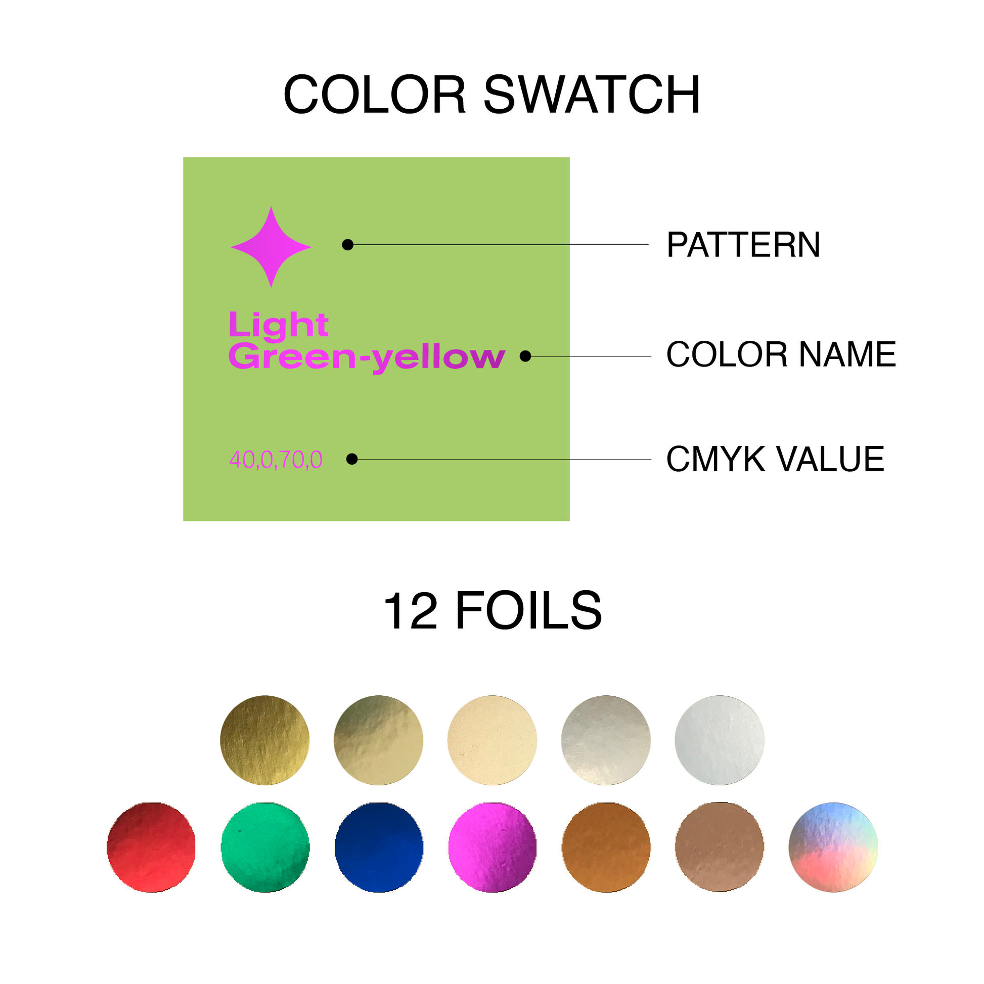 Color Foil Color est un nuancier soigneusement conçu qui met en valeur l’interaction saisissante entre le marquage à chaud et la couleur de fond — une combinaison puissante qui crée un impact visuel durable.
